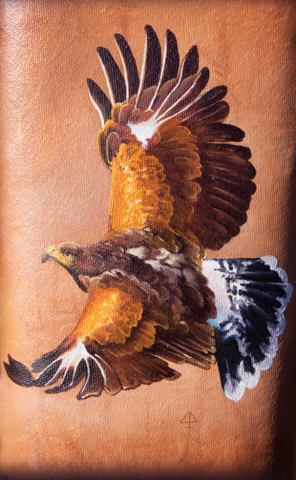 Schon seit meiner Kindheit male ich. Als Teenager entdeckte ich Ölfarbe und Leinwand für mich. Heute kombiniere ich gerne gemalte Bilder und Lederarbeiten. Dabei wird das Bild auf Leinwand gemalt und wenn es trocken ist, wird es auf den Lederkorpus kaschiert - und schon hat man ein Bild, das man nicht nur an der Wand hängen hat! Punzieren und bemalen von Leder geht auch, dafür verwende ich Acrylfarbe oder sogenannte Antique-Finishes, wobei diese dann her die Punzierung, also die Vertiefungen betonen und somit den Kontrast erhöhen.